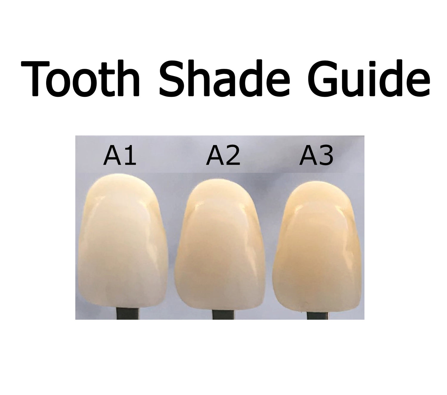 Choose Your Tooth Shade: Refer to the shade guide on the third photo to choose your shade. Tell us your desired shade when you submit your impressions for approval. If the shades shown are not what you desire, please let us know.